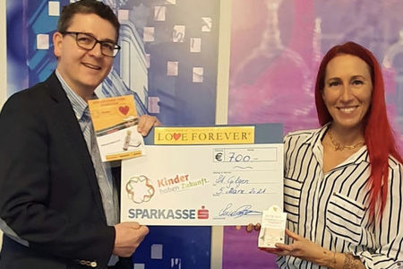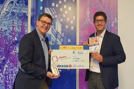 Somit konnten Susanne Berger und Matthias Widlroither gemeinsam 1.000 EUR an das Vorstandsmitglied vom Verein „Kinder haben Zukunft“, Alfred Pozetti, überreichen.