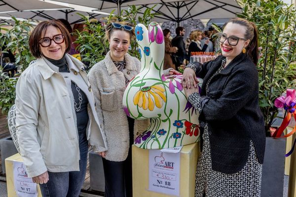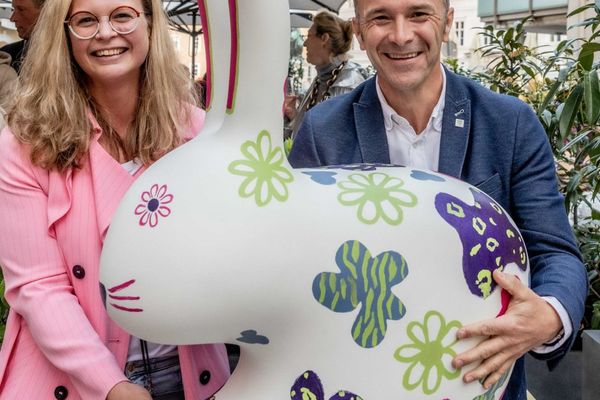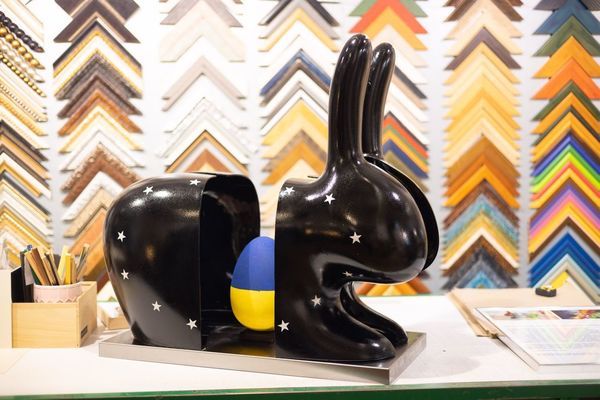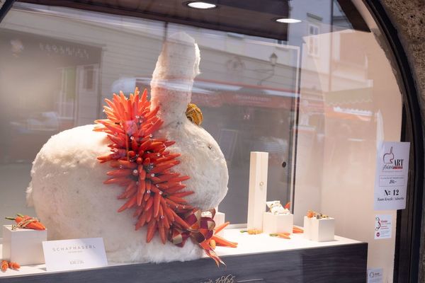 In 25 teilnehmenden Geschäften ist jeweils ein, von Künstler*innen gestalteter Osterhase zu entdecken.