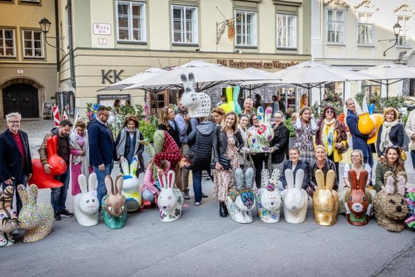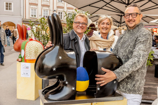 Die 26 kunstvoll gestalteten Hasen der Salzburger Altstadt-Kauleute wurden von den Geschäften zum Restaurant KOLLER+KOLLER am Waagplatz gebracht und dem zahlreich erschienenem Publikum präsentiert.