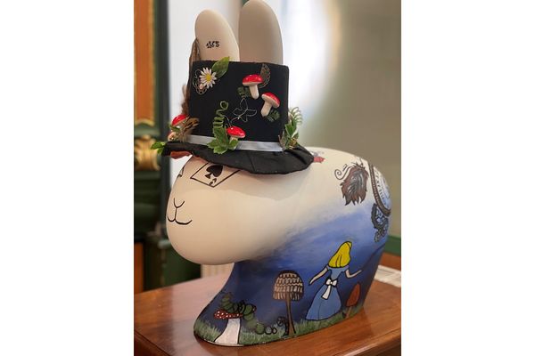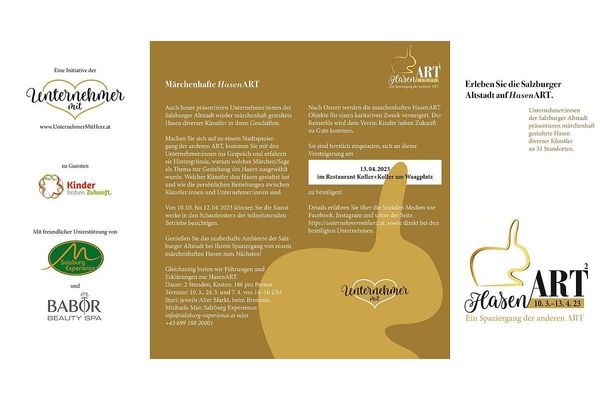 Auch 2023 präsentieren Unternehmer:innen der Salzburger Altstadt wieder märchenhaft gestaltete Hasen diverser Künstler in ihren Geschäften.