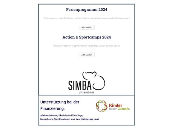 Das Team von SIMBA veranstaltet Ferien- und Sportcamps für Kinder in den Ferien und wir von Kinder-haben-Zukunft unterstützen gerne Familien aus dem Salzburger Land, die Schwierigkeiten haben, diese Angebote zu finanzieren.