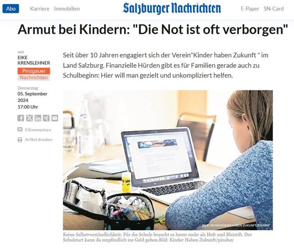 Seit über 10 Jahren engagiert sich der Verein "Kinder haben Zukunft " im Land Salzburg. Finanzielle Hürden gibt es für Familien gerade auch zu Schulbeginn: Hier will man gezielt und unkompliziert helfen.