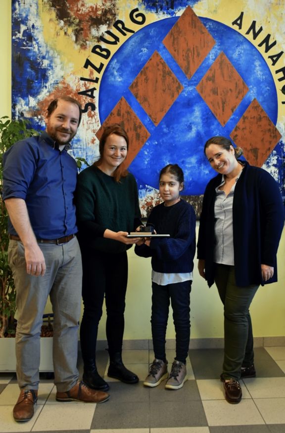 Zahra leidet an Epidermolysis bullosa (Schmetterlingskrankheit) und braucht in manchen Lebensbereichen Unterstützung. Um ihre Schulbildung im KOMD-Zweig erfolgreich absolvieren zu können, wurde ihr vom Verein „Kinder haben Zukunft“ ein MS Surface gesponsert, mit dem sie von nun an leichter im Unterricht mitarbeiten kann. Zahras Weg zur Matura kann nun mit neuer Motivation starten!
